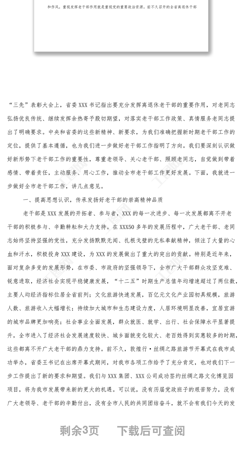 在全市離退休干部工作座談會上的匯報發(fā)言包含