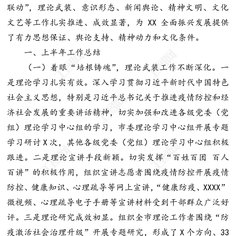 工圖網(wǎng)提供2020年市宣傳部上半年宣傳及意識形態(tài)工作總結(jié)供會員免費(fèi)下載。更多精彩黨課PPT素材,盡在工圖網(wǎng)。