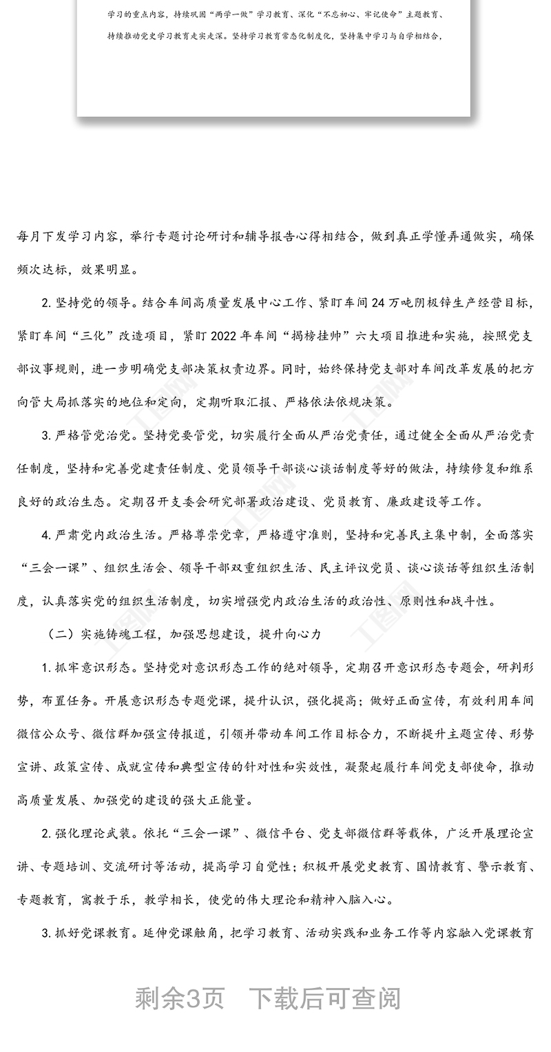 工圖網(wǎng)提供公司車間黨支部2022年度工作計(jì)劃供會(huì)員免費(fèi)下載。更多精彩黨課PPT素材,盡在工圖網(wǎng)。