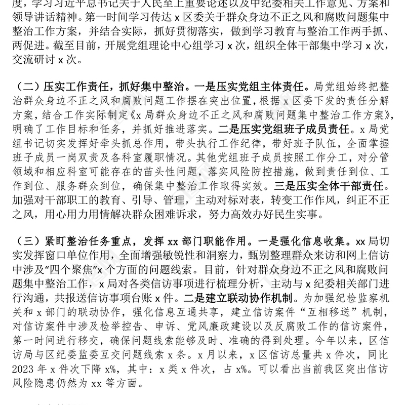 局群眾身邊不正之風(fēng)和腐敗問題集中整治工作匯報精選范文