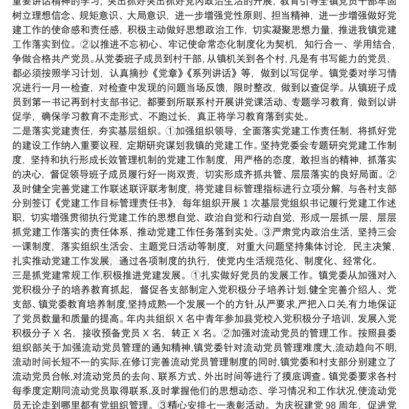 **縣鄉(xiāng)鎮(zhèn)(社區(qū))黨委書記抓基層黨建述職評議工作情況報告包含