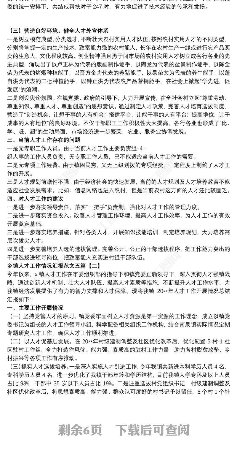 鄉(xiāng)鎮(zhèn)人才工作情況匯報(bào)范文五篇 Array