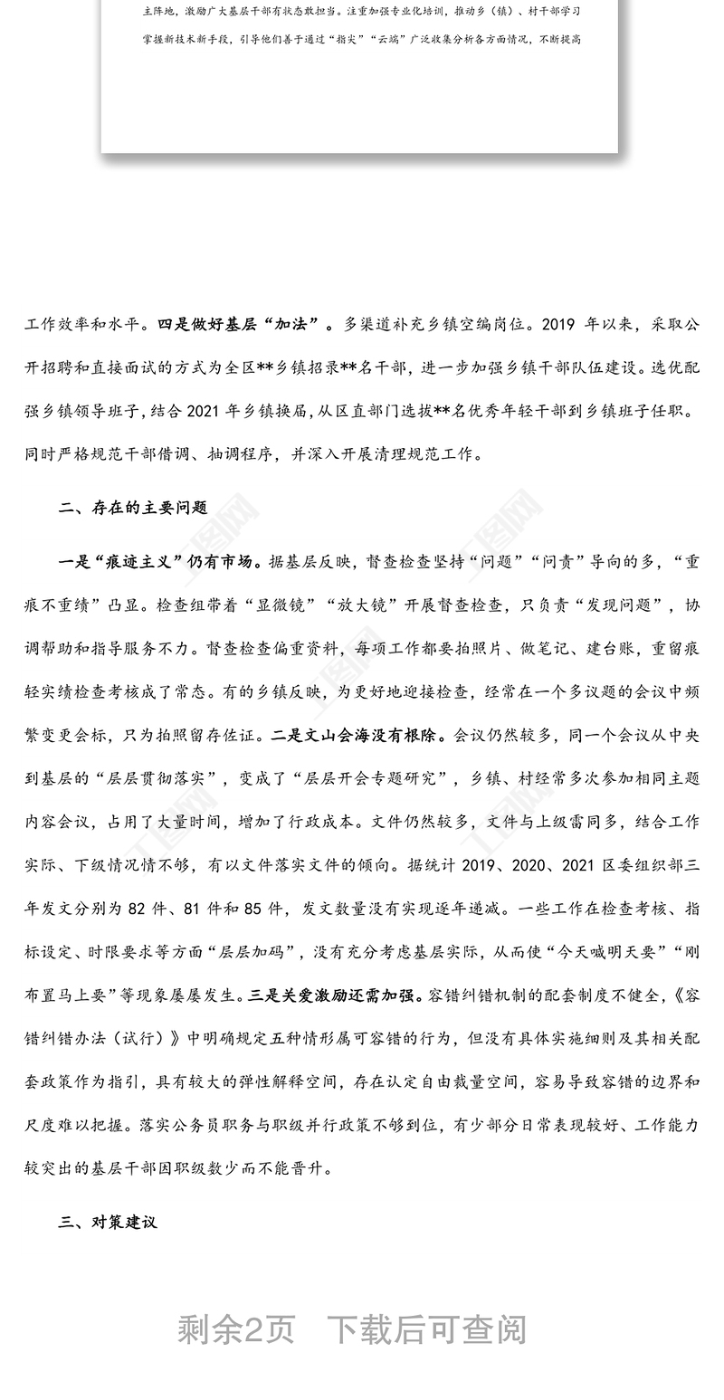 區(qū)委組織部整治形式主義為基層減負(fù)工作情況
