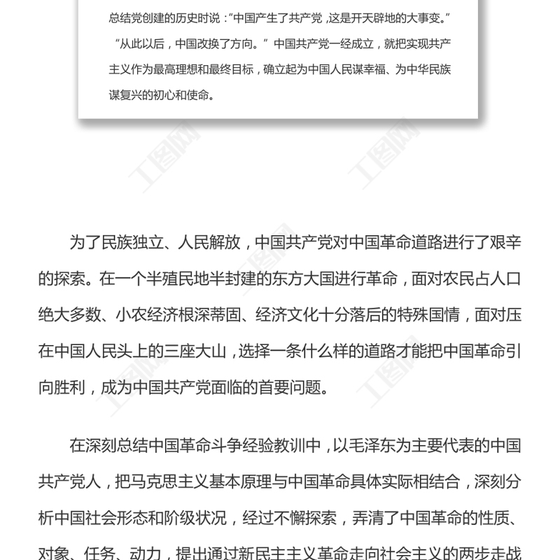 工圖網(wǎng)提供深入學(xué)習(xí)黨的百年歷史 更加堅(jiān)定中國道路自信供會(huì)員免費(fèi)下載。更多精彩黨課PPT素材,盡在工圖網(wǎng)。
