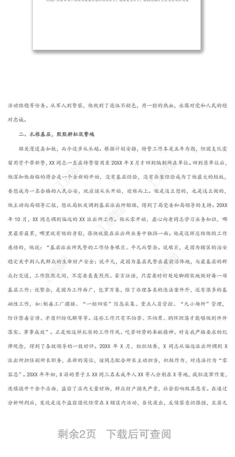 工圖網(wǎng)提供縣公安局X派出所副所長(zhǎng)事跡材料供會(huì)員免費(fèi)下載。更多精彩黨課PPT素材,盡在工圖網(wǎng)。