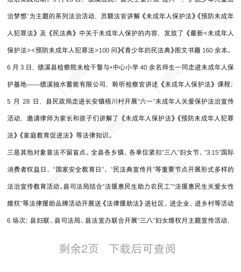 工圖網(wǎng)提供縣2022年上半年法治宣傳教育工作總結(jié)供會(huì)員免費(fèi)下載。更多精彩黨課PPT素材,盡在工圖網(wǎng)。