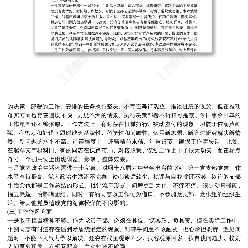 2021年度組織生活會黨支部對照檢查材料包含