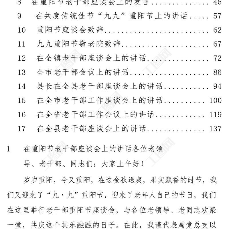 重陽(yáng)節(jié)講話匯編,重陽(yáng)節(jié)講話匯編,公文范例,領(lǐng)導(dǎo)述職報(bào)告,機(jī)關(guān)公文寫作 Array