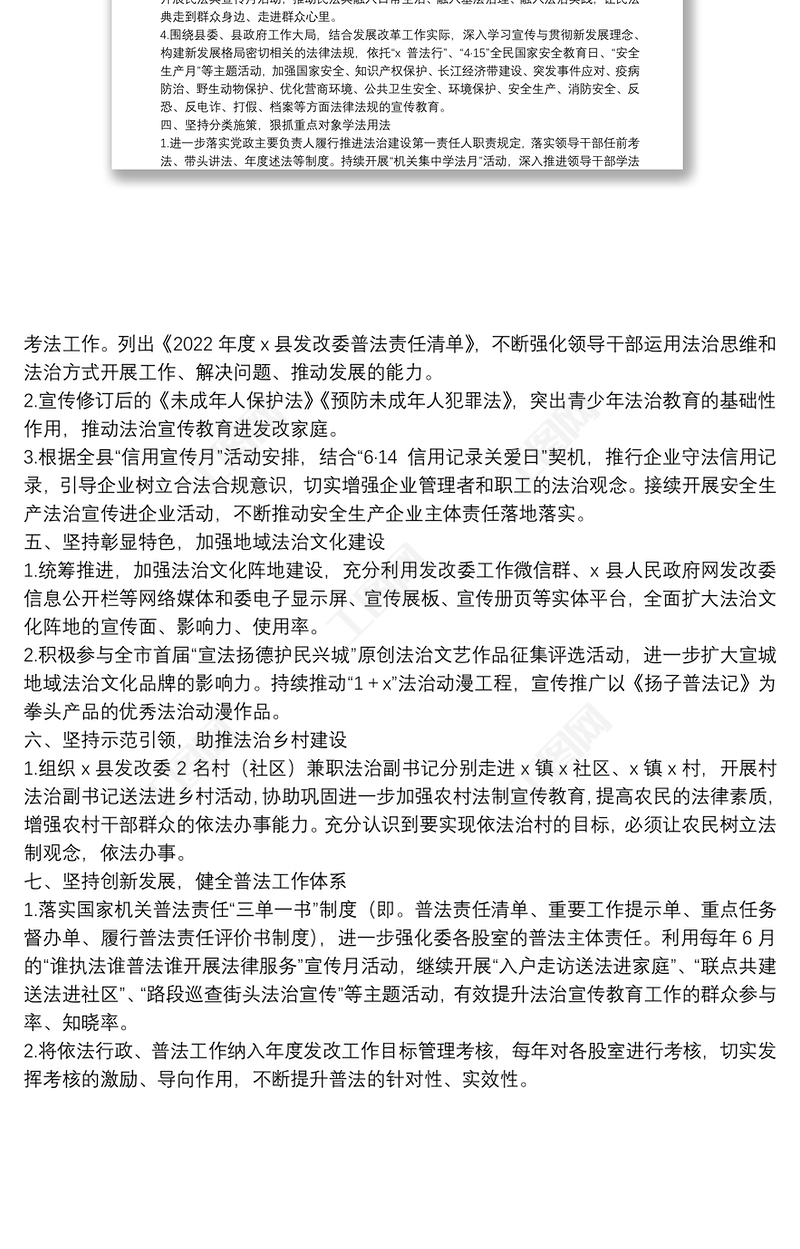 縣發(fā)改委(糧儲局)2022年法治宣傳教育工作要點