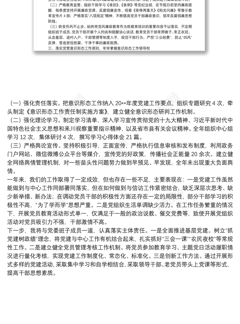 20**年度落實黨建主體責(zé)任述職報告 Array