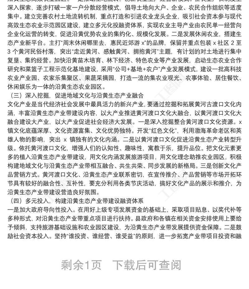 鎮(zhèn)沿黃特色經(jīng)濟(jì)帶建設(shè)的調(diào)研報告