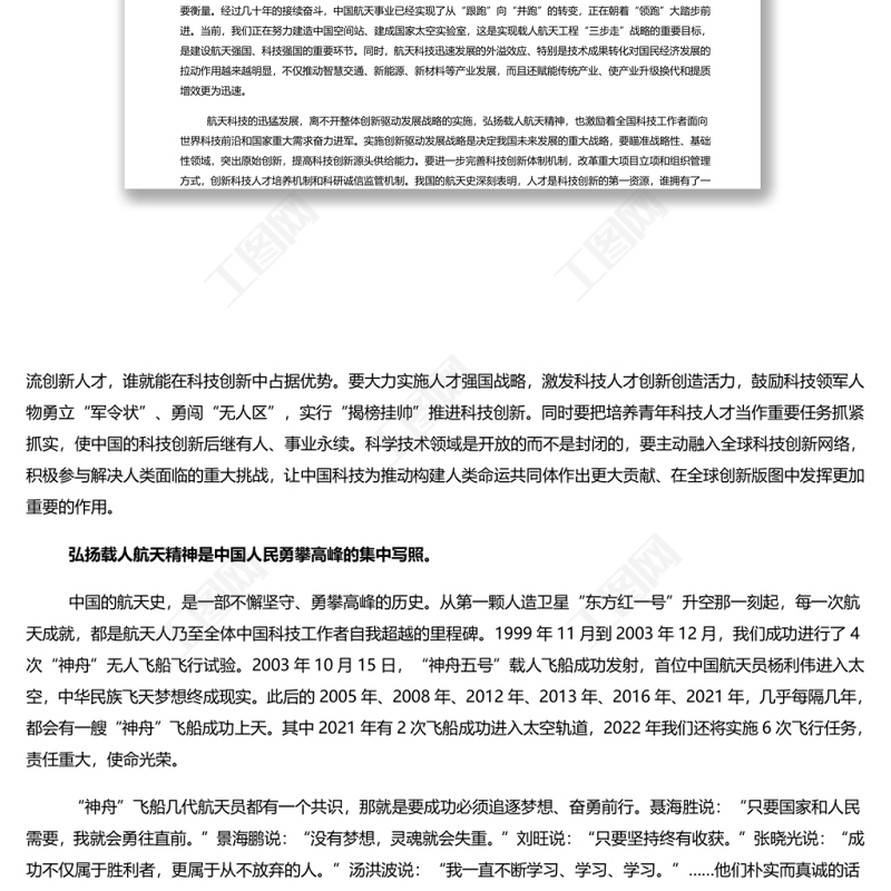 工圖網(wǎng)提供弘揚(yáng)載人航天精神建設(shè)航天科技強(qiáng)國(guó) 中國(guó)航天日系列演講稿供會(huì)員免費(fèi)下載。更多精彩黨課PPT素材,盡在工圖網(wǎng)。