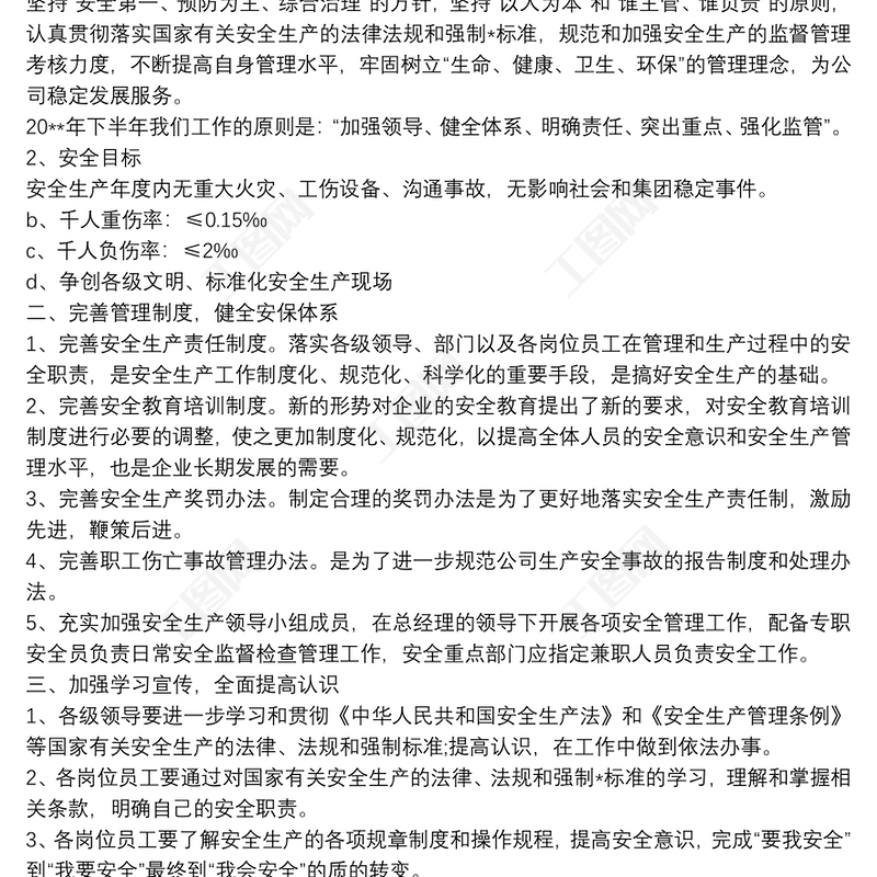 工圖網(wǎng)提供“安全第一預(yù)防為主”2020公司安全生產(chǎn)工作計(jì)劃五篇供會員免費(fèi)下載。更多精彩黨課PPT素材,盡在工圖網(wǎng)。