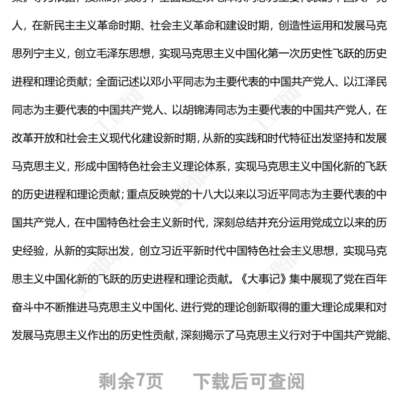 > 黨課講稿 > 馬克思主義中國(guó)化一百年的集中展現(xiàn)深入學(xué)習(xí)《大事記》的主要內(nèi)容和特色專(zhuān)題.DOCX 【圖片、文字、動(dòng)畫(huà)均可編輯】