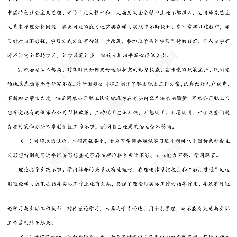 2021民主生活會、組織生活會問題清單及原因分析185條包含