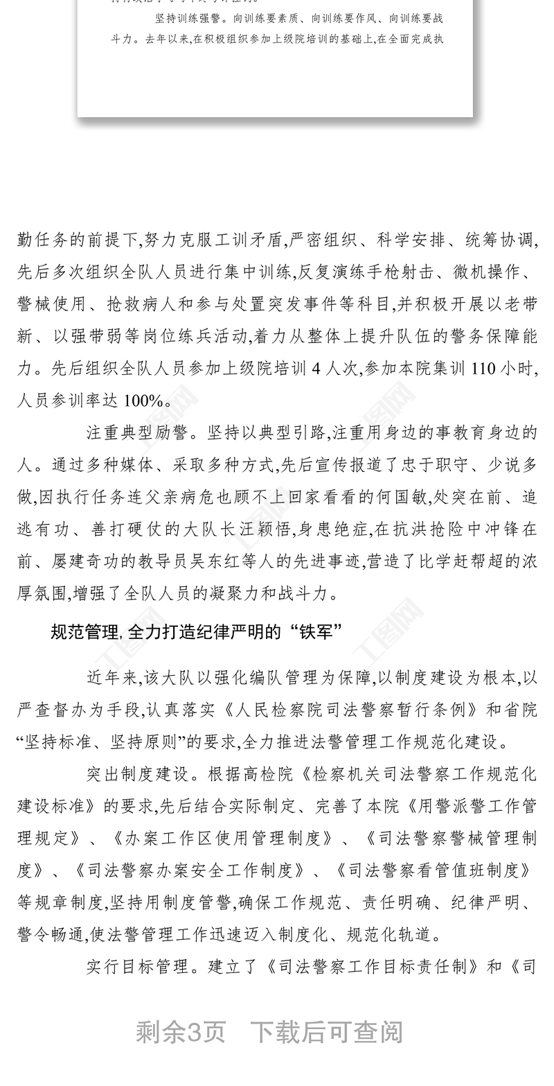 工圖網(wǎng)提供2021【先進事跡】縣檢察院司法警察大隊先進集體事跡材料供會員免費下載。更多精彩黨課PPT素材,盡在工圖網(wǎng)。