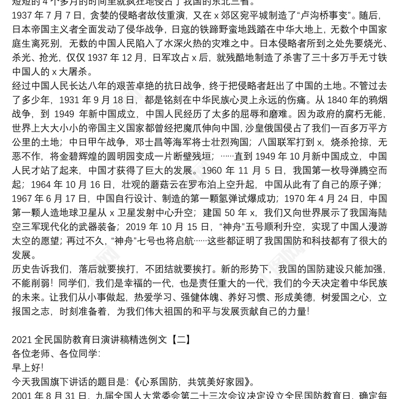 2021全民國(guó)防教育日演講稿精選例文 Array