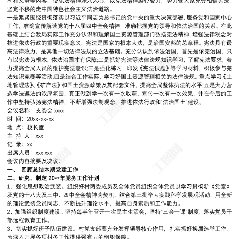 工圖網(wǎng)提供黨支部主題黨日活動會議記錄三篇供會員免費下載。更多精彩黨課PPT素材,盡在工圖網(wǎng)。