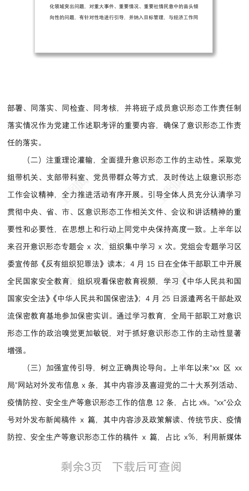 工圖網提供2022年上半年區(qū)局黨組意識形態(tài)工作情況報告范文工作匯報總結供會員免費下載。更多精彩黨課PPT素材,盡在工圖網。