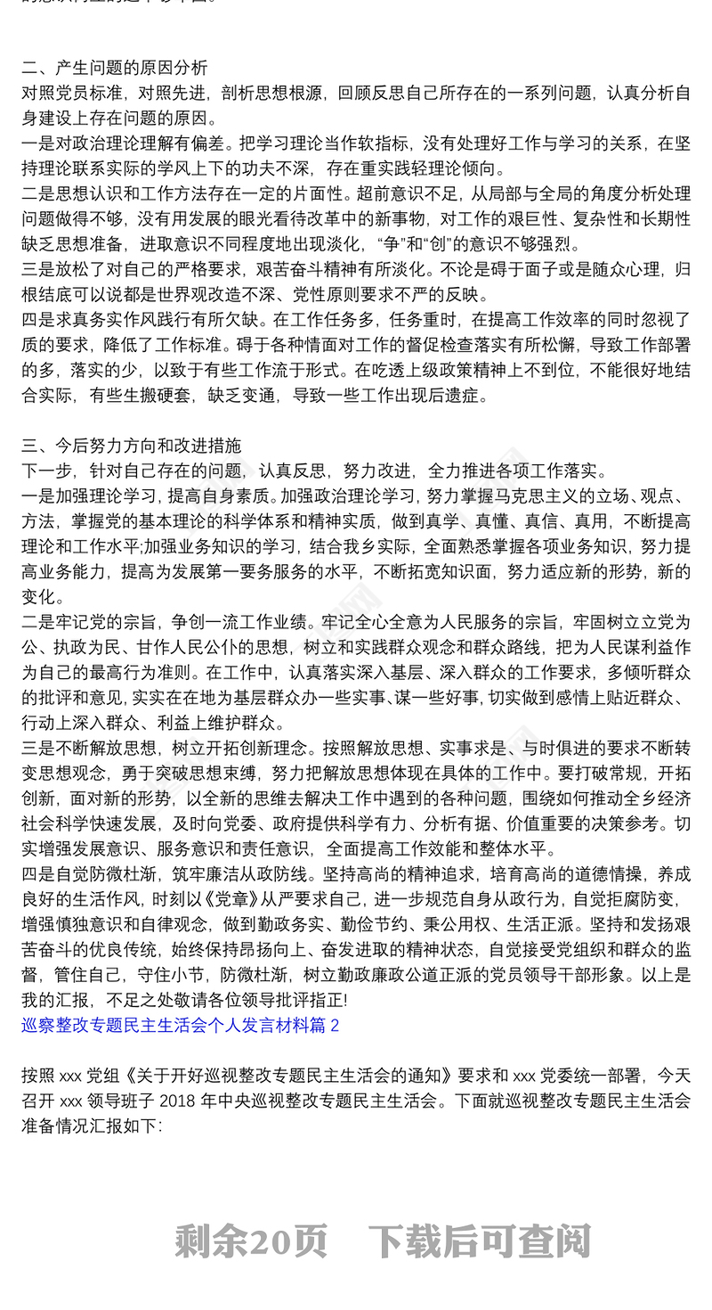 2021巡察整改專題民主生活會(huì)發(fā)言材料(巡察整改對(duì)照檢查,個(gè)人對(duì)照檢查材料,個(gè)人檢視剖析)包含
