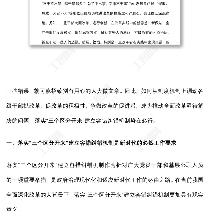 > 公文范文 > 關(guān)于落實(shí)“三個(gè)區(qū)分開(kāi)來(lái)”建立容錯(cuò)糾錯(cuò)機(jī)制的思考.DOCX 【圖片、文字、動(dòng)畫均可編輯】