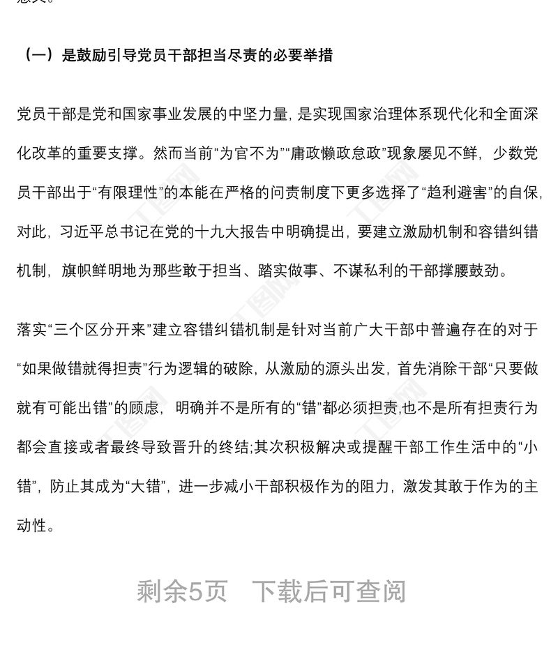 工圖網(wǎng)提供關(guān)于落實(shí)“三個(gè)區(qū)分開(kāi)來(lái)”建立容錯(cuò)糾錯(cuò)機(jī)制的思考供會(huì)員免費(fèi)下載。更多精彩黨課PPT素材,盡在工圖網(wǎng)。