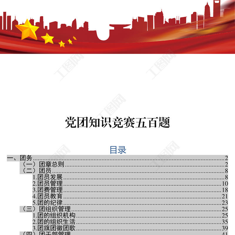 工圖網(wǎng)提供共青團(tuán)最新黨團(tuán)知識競賽題庫附答案供會員免費(fèi)下載。更多精彩黨課PPT素材,盡在工圖網(wǎng)。