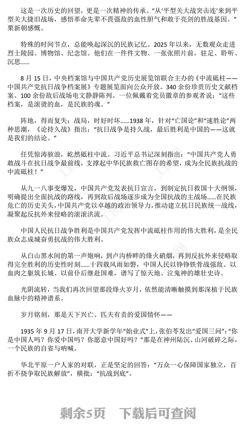 > 弘揚(yáng)偉大抗戰(zhàn)精神奮進(jìn)民族復(fù)興偉業(yè)PPT紀(jì)念抗戰(zhàn)勝利八十周年課件(講稿).DOCX 【圖片、文字、動畫均可編輯】