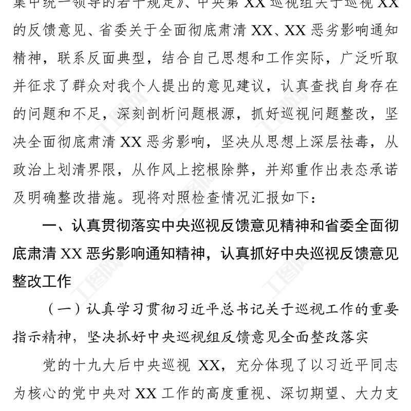 巡視整改暨全面徹底肅清XX惡劣影響專題民主生活會(huì)個(gè)人對(duì)照檢查材料,對(duì)照檢查材料,公文范例,領(lǐng)導(dǎo)述職報(bào)告,機(jī)關(guān)公文寫作 Array