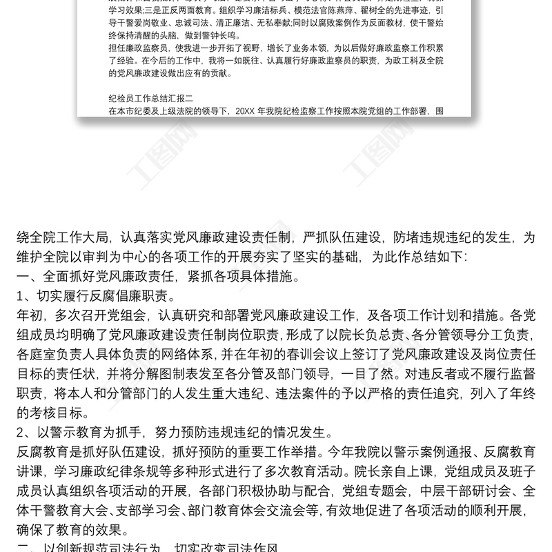 紀(jì)檢員工作總結(jié)匯報(bào) Array