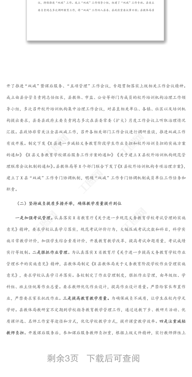 工圖網(wǎng)提供縣學(xué)?!半p減”工作情況匯報供會員免費下載。更多精彩黨課PPT素材,盡在工圖網(wǎng)。