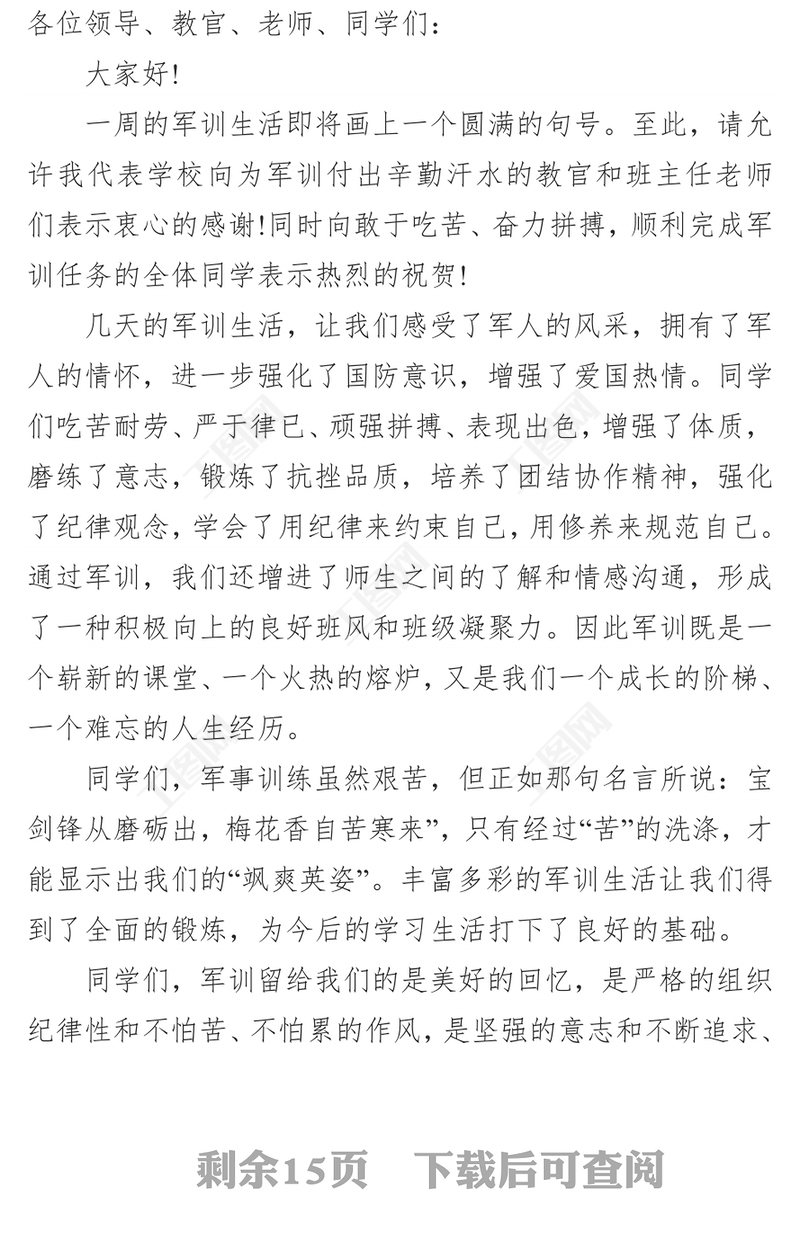 工圖網(wǎng)提供軍訓(xùn)閉幕式發(fā)言稿匯編供會(huì)員免費(fèi)下載。更多精彩黨課PPT素材,盡在工圖網(wǎng)。