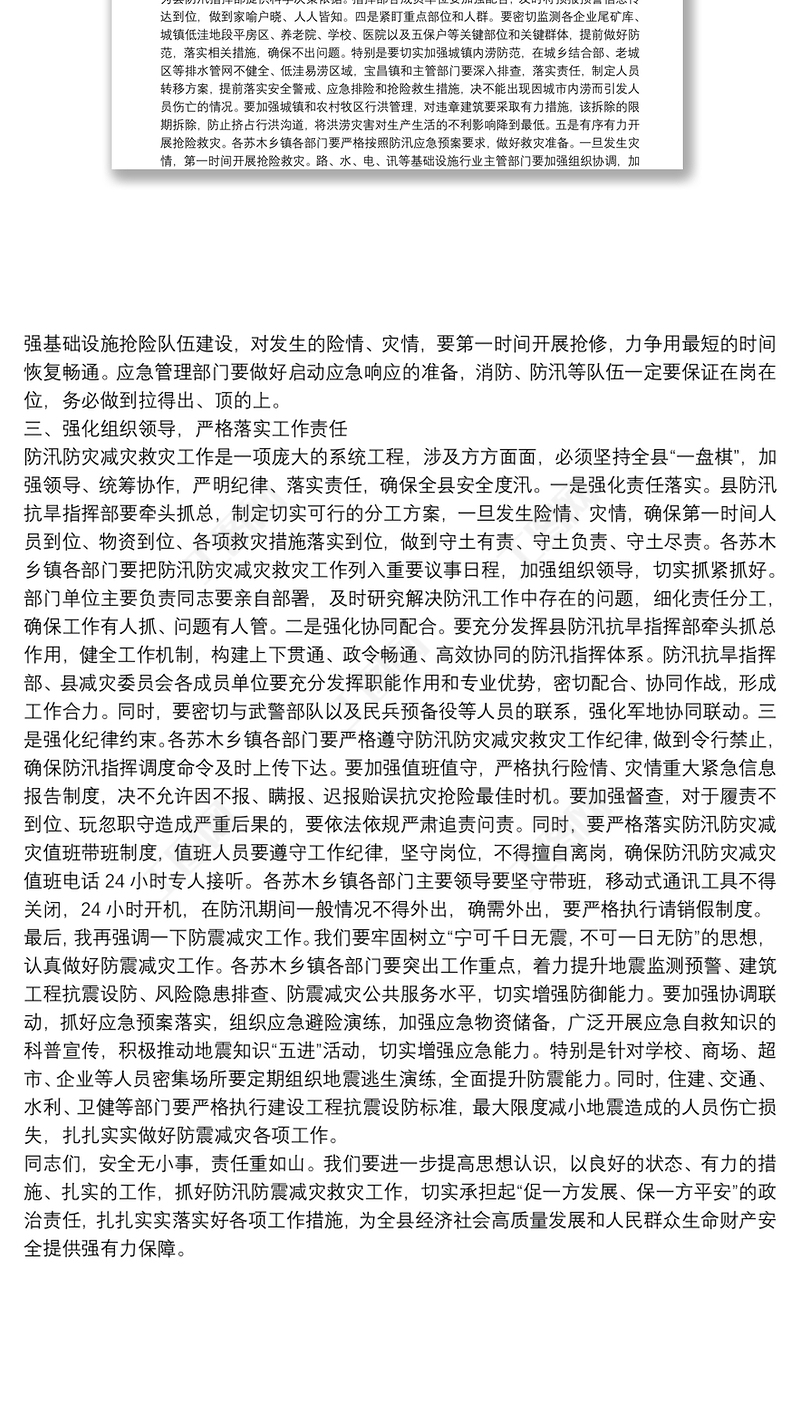 在縣防汛防災(zāi)減災(zāi)救災(zāi)工作會(huì)議上的講話