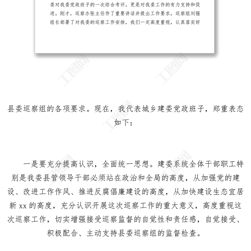 工圖網(wǎng)提供2021【領(lǐng)導(dǎo)講話】建設(shè)局副局長在縣委巡察工作動員會上的表態(tài)發(fā)言供會員免費下載。更多精彩黨課PPT素材,盡在工圖網(wǎng)。
