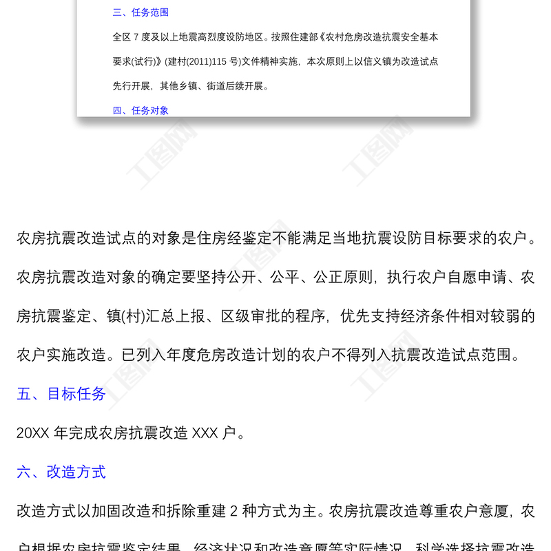 工圖網(wǎng)提供農(nóng)村住房抗震改造工作實施方案供會員免費下載。更多精彩黨課PPT素材,盡在工圖網(wǎng)。