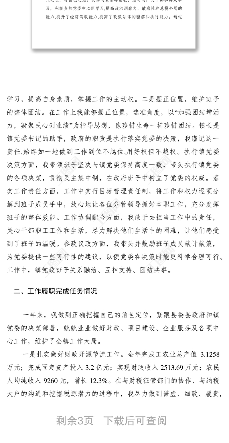XXXX年鎮(zhèn)長(zhǎng)述職述德述廉報(bào)告 Array
