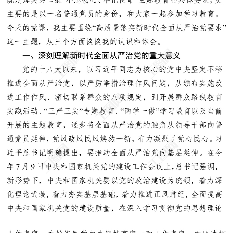 主題教育專(zhuān)題黨課落實(shí)落細(xì)縱深推進(jìn)高質(zhì)量落實(shí)新時(shí)代全面從嚴(yán)治黨新要求,從嚴(yán)治黨,公文范例,領(lǐng)導(dǎo)述職報(bào)告,機(jī)關(guān)公文寫(xiě)作 Array
