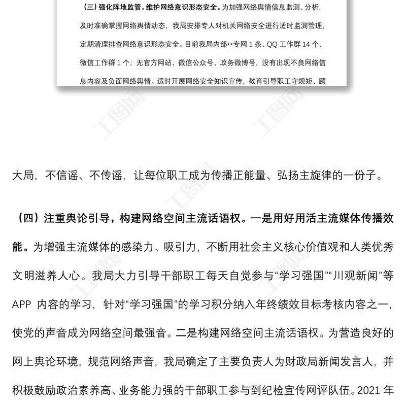 工圖網(wǎng)提供關(guān)于開展網(wǎng)絡(luò)意識形態(tài)工作的自查報告供會員免費下載。更多精彩黨課PPT素材,盡在工圖網(wǎng)。