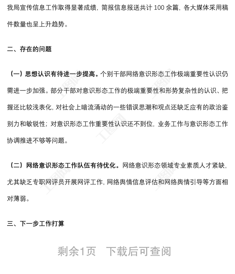 2021年意識形態(tài)工作學習材料2021黨支部書記意識形態(tài)工作述職報告2022黨員領(lǐng)導干部網(wǎng)絡(luò)意識形態(tài)工作教育培訓工作方案2021黨委黨組網(wǎng)絡(luò)意識形態(tài)工作責任實施細則全文專題研究意識形態(tài)工作會議記錄2021意識形態(tài)工作組織生活會材料2021網(wǎng)絡(luò)意識形態(tài)工作分析研判報告2022意識形態(tài)工作巡察重點及注意事項公安意識形態(tài)工作計劃2021統(tǒng)戰(zhàn)部工作意識形態(tài)發(fā)言中學2021年意識形態(tài)工作總結(jié)2021意識形態(tài)網(wǎng)絡(luò)輿情管控工作總結(jié)編辦意識形態(tài)工作整改社區(qū)2021年上半年意識形態(tài)工作總結(jié)2022網(wǎng)絡(luò)意識形態(tài)工作培訓資料2021二級學院意識形態(tài)工作自查報告