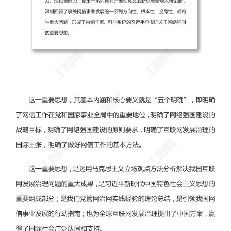 工圖網(wǎng)提供推進(jìn)網(wǎng)絡(luò)強(qiáng)國建設(shè)的強(qiáng)大思想武器和科學(xué)行動(dòng)指南供會(huì)員免費(fèi)下載。更多精彩黨課PPT素材,盡在工圖網(wǎng)。