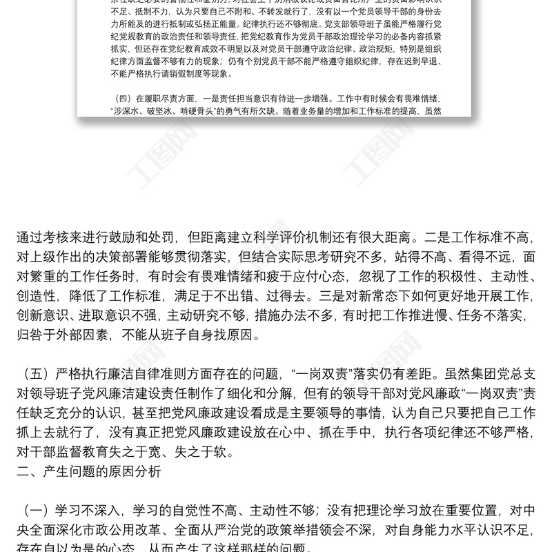 工圖網(wǎng)提供集團(tuán)公司黨支部班子組織生活會對照檢查材料供會員免費(fèi)下載。更多精彩黨課PPT素材,盡在工圖網(wǎng)。