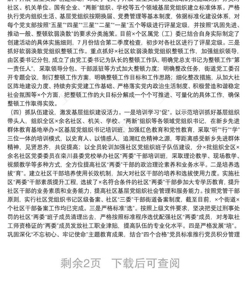 2022銀行黨建品牌創(chuàng)建工作方案2021年建黨100周年黨建工作總結(jié)2021施工項(xiàng)目黨支部黨建工作亮點(diǎn)經(jīng)驗(yàn)材料機(jī)關(guān)黨支部2022年度機(jī)關(guān)黨建工作計(jì)劃工作要點(diǎn)2022國(guó)企黨建品牌創(chuàng)建工作方案2023學(xué)校黨建工作季度工作總結(jié)2024抓好機(jī)關(guān)黨建工作的建議2023開(kāi)展新時(shí)代中國(guó)特色社會(huì)主義思想調(diào)研工作情況匯報(bào)2023黨群紀(jì)檢黨建工作年度總結(jié)2023市委組織部開(kāi)展黨內(nèi)主題教育2023社會(huì)組織黨建工作總結(jié)2023組織部新時(shí)代中國(guó)特色社會(huì)主義思想民主生活會(huì)材料2023上級(jí)調(diào)研支部書(shū)記匯報(bào)