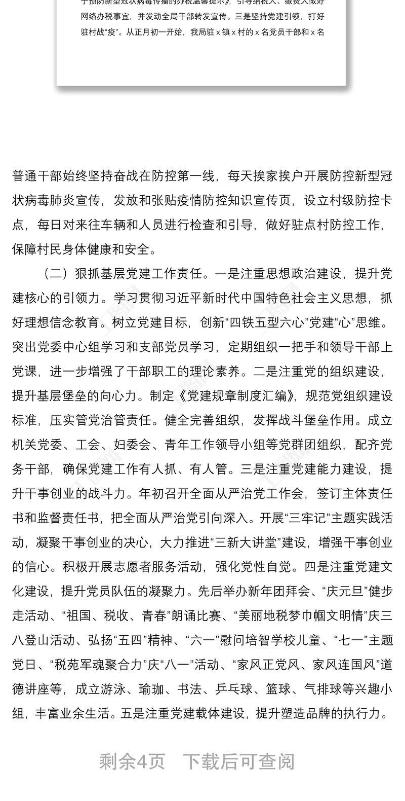 工圖網(wǎng)提供稅務(wù)局黨委書(shū)記2020年度抓黨建工作述職報(bào)告范文供會(huì)員免費(fèi)下載。更多精彩黨課PPT素材,盡在工圖網(wǎng)。