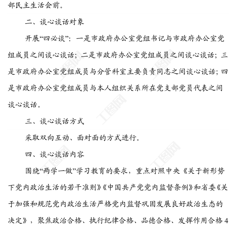 工圖網(wǎng)提供民主生活會(huì)談心談話活動(dòng)方案供會(huì)員免費(fèi)下載。更多精彩黨課PPT素材,盡在工圖網(wǎng)。