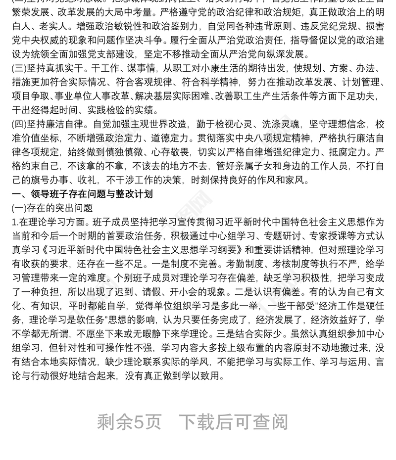 領(lǐng)導(dǎo)班子2017年度民主生活會班子問題清單及整改措施包含