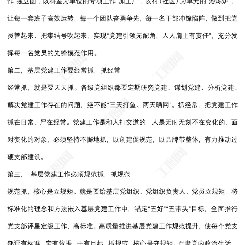 工圖網(wǎng)提供夯實(shí)基礎(chǔ),創(chuàng)新思路 以最高標(biāo)準(zhǔn)、最實(shí)舉措推動(dòng)基層黨建工作全面過(guò)硬——街道黨工委副書(shū)記、辦事處主任交流發(fā)言材料供會(huì)員免費(fèi)下載。更多精彩黨課PPT素材,盡在工圖網(wǎng)。