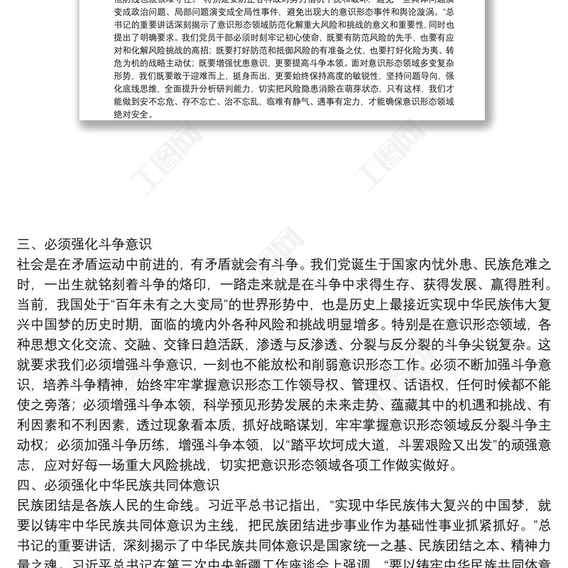 工圖網(wǎng)提供意識形態(tài)工作經(jīng)驗(yàn)發(fā)言:強(qiáng)化“五種意識” 深入做好意識形態(tài)領(lǐng)域工作供會員免費(fèi)下載。更多精彩黨課PPT素材,盡在工圖網(wǎng)。