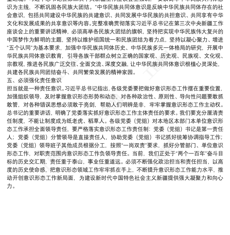 意識形態(tài)工作經(jīng)驗(yàn)發(fā)言:強(qiáng)化“五種意識” 深入做好意識形態(tài)領(lǐng)域工作