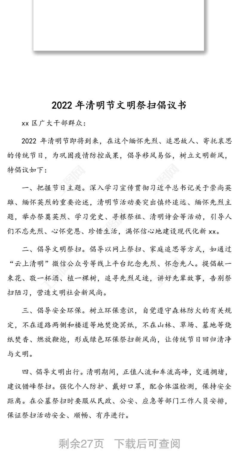 工圖網(wǎng)提供2022年清明節(jié)文明祭掃倡議書(shū)匯編(17篇)供會(huì)員免費(fèi)下載。更多精彩黨課PPT素材,盡在工圖網(wǎng)。