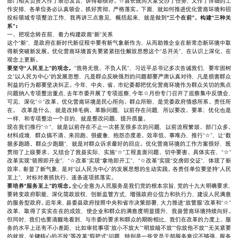 在優(yōu)化營(yíng)商環(huán)境暨工程建設(shè)項(xiàng)目招投標(biāo)突出問(wèn)題專(zhuān)項(xiàng)整治工作會(huì)上的講話,企業(yè) Array